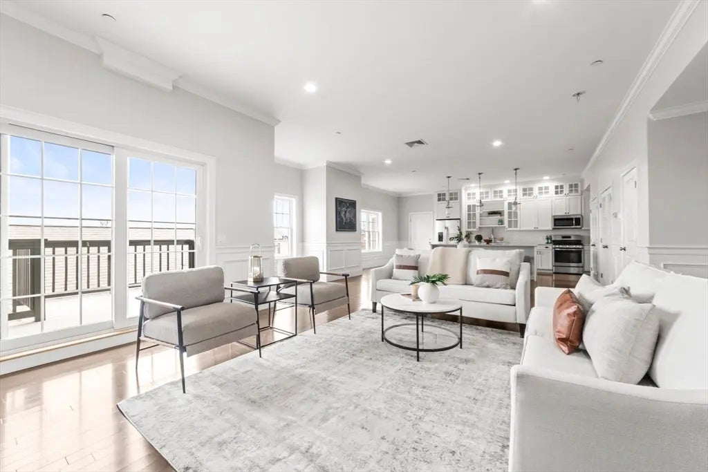 Welcome to this stunning 4-bedroom, 3-bathroom home in South Boston’s desirable City Point! Spanning 2,300 square feet, this spacious residence is designed for effortless living and entertaining, with an open-concept living and kitchen area featuring a private deck, exclusive roof rights, gas fireplace, high ceilings, and oversized windows that flood the space with natural light. The sleek kitchen boasts stainless steel appliances, quartz countertops, and a large island, perfect for gathering. Two of the generously sized bedrooms include walk-in closets and ensuite bathrooms, offering a private retreat within the home. An additional full bath and two more bedrooms provide flexibility for family, guests or office. The home also features brand new furnace + HW tank, two garage parking spaces (tandem), in-unit laundry, and ample storage. Located just moments from Castle Island, M Street Beach, this exceptional home is an exceptional find.