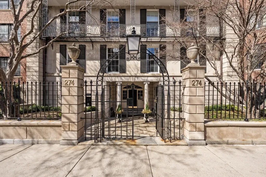 Stately cooperative home in prestigious Back Bay building, located on the 7th floor, with wide city views. Well ordered floor plan with elegant foyer leading to a spacious living room, gracious dining room (both with fireplaces) adjacent to large kitchen and pantry. Master bedroom with ensuite bath, guest room with a peek of the Charles River and guest bath. Small sitting room with powder room adjoining. Excellent storage, and elevator access to a welcoming entrance foyer. Unit has hardwood floors, large windows, A/C and washer/dryer. Service elevator goes to parking space, gym and private storage. Professionally managed. Superintendent. Doorman building.