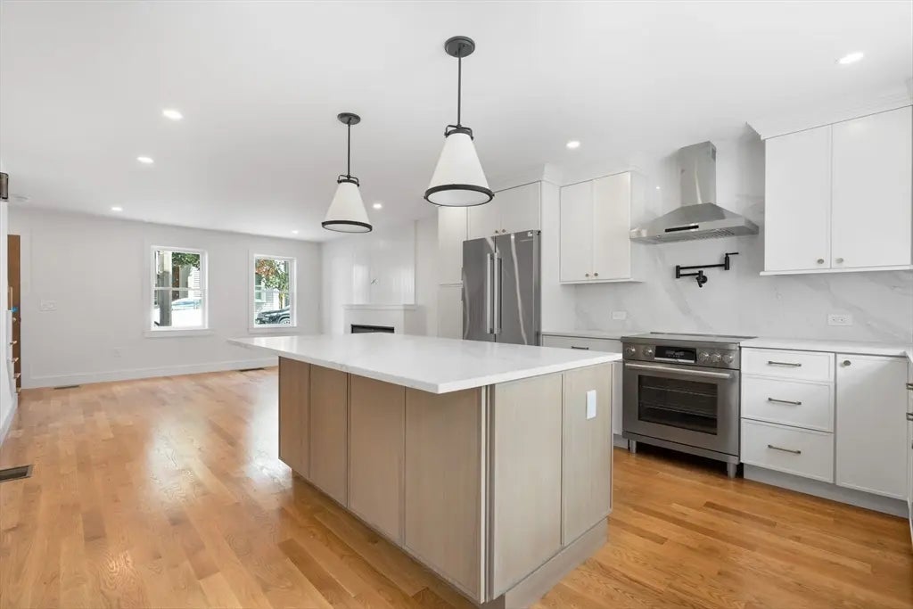 Welcome to 597 E 2nd Street, a fully renovated single-family home on South Boston’s coveted East Side. This 3-bedroom, 2.5-bath residence spans three levels, blending designer finishes with modern functionality. The open-concept main floor features a chef-inspired kitchen with Bosch appliances, a farmhouse sink, and striking Cygnet Drift quartz countertops, flowing seamlessly into spacious dining and living areas. The top floor is a private retreat with a full primary suite, complete with an en-suite bath and large closet. Two additional bedrooms and a full bath on the second level are perfect for family, guests, or a home office. A private patio creates an ideal setting for entertaining or relaxing outdoors, while the rare convenience of off-street parking enhances daily living. With every detail thoughtfully designed and an unbeatable location close to South Boston’s vibrant shops, restaurants, beaches, and the Seaport, this home truly offers the best of city living!