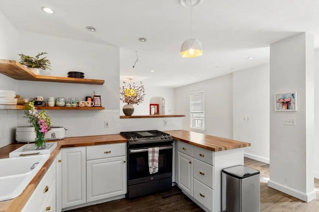 Elegant designer residence offering exceptional space and refined style. The entire third floor is dedicated to a luxurious primary suite, complete with custom built-in dressers and a spa-like open bathroom featuring a soaking tub. The second level hosts three spacious bedrooms and a beautifully appointed full bath, while the first floor showcases a gourmet eat-in kitchen flowing seamlessly into sophisticated dining and living areas. Throughout the home, gleaming hardwood floors, designer lighting, central air and heat, and a brand-new hot water heater add comfort and modern convenience to this timeless property.