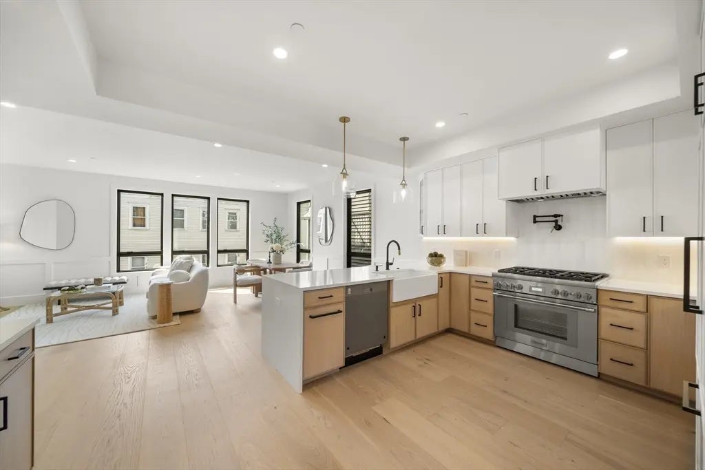 The crown jewel of 136 W 8th Street, this brand-new penthouse duplex offers 4 bedrooms plus an office, 3 baths, almost 2,000 sq feet, and two private balconies. Designed for both everyday living and entertaining, the home showcases soaring ceilings, wide-plank white oak floors, and oversized windows, that flood the space with natural light. The chef’s kitchen boasts quartz counters, a spacious island, and custom cabinetry, opening to expansive dining and living areas. The private primary suite features a walk-in closet and spa-inspired bath, while three additional bedrooms and a flexible office/den provide space for guests, work, or media. With in-unit laundry hook ups, central air, two garage parking spaces, and premium finishes throughout, this penthouse is as functional as it is beautiful. Just blocks to Broadway, Seaport, and South Boston’s shops, dining, and beaches—this home offers the best of city living with a warm, welcoming touch.