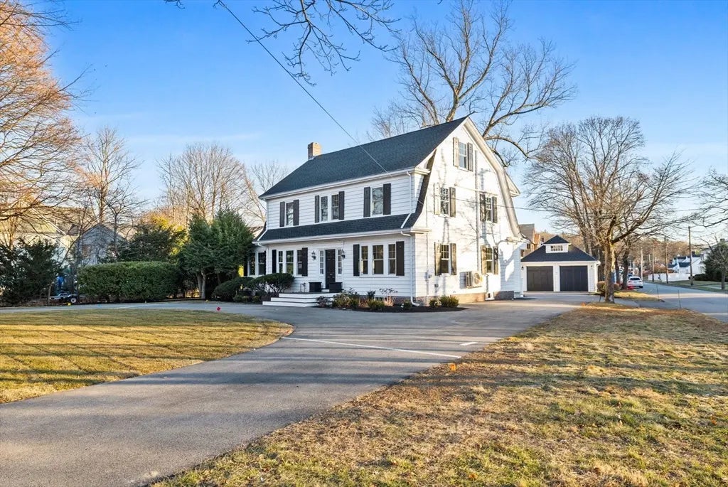 Renovated Stately Colonial with the charm of the old & the updates of the new. The gracious Foyer opens to the Front to back Fireplace Family Room w/Coffered Ceiling & wet bar all open to the stunning White kitchen w/Gas Cooking, Stainless Steel Appliances, pantry, Quartz White Countertops Stream line windows making this home very bright & inviting. Eat-in Kitchen area that is surrounded by windows w/access out to deck & overlooking the stunning fenced in lot. The Dining Room is located off the kitchen w/access to Wet-Bar ideal for entertaining! First Floor Library is tucked away & private surrounded by windows. The Second level consists of three bedrooms & two Full Bathrooms; The Primary suite w/Full White Tiled Bathroom has an oversized shower. The Third Level w/Two additional bedrooms & built-in has access to Full Bathroom. Two car detached Garage is charming wi/extra Storage. Many fabulous features throughout this home. Minutes to All Major Rtes, Whole Foods,Starbucks, Dining& More
