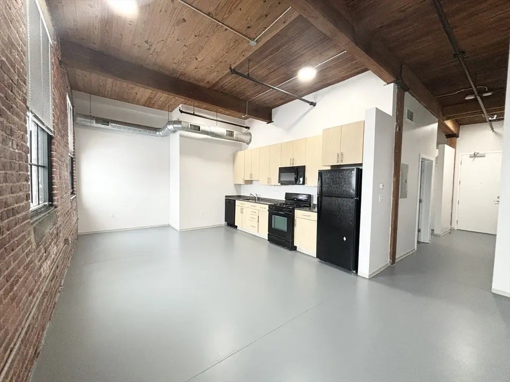 Contemporary loft style one bedroom apartment. Minutes to downtown Boston and Logan airport. Easy access to public transportation Silver Line, shopping and dining. Apartment features exposed brick walls and high ceilings with original wood beams. Beautiful oversized windows! Kitchen with granite countertop. Has central AC. Gas and electric are separate. Washer and dryer in the unit. Parking available. Fitness center and community lounge with WiFi access. Elevator building. Outdoor patio and rooftop deck.